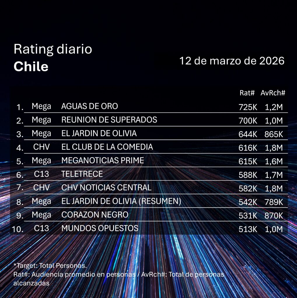 Finalmente, “El Jardín de Olivia”, protagonizada por Nicole Espinoza, Francisco Gormaz y Alejandro Trejo, está en su momento de mayor clímax en su trama, y que la emisión de este jueves alcanzó la tercera posición con una media de 644 mil personas por minuto y un alcance de 865 mil. En el caso del resumen, se posicionó en el octavo lugar promediando 531 mil personas con un alcance de 870 mil.